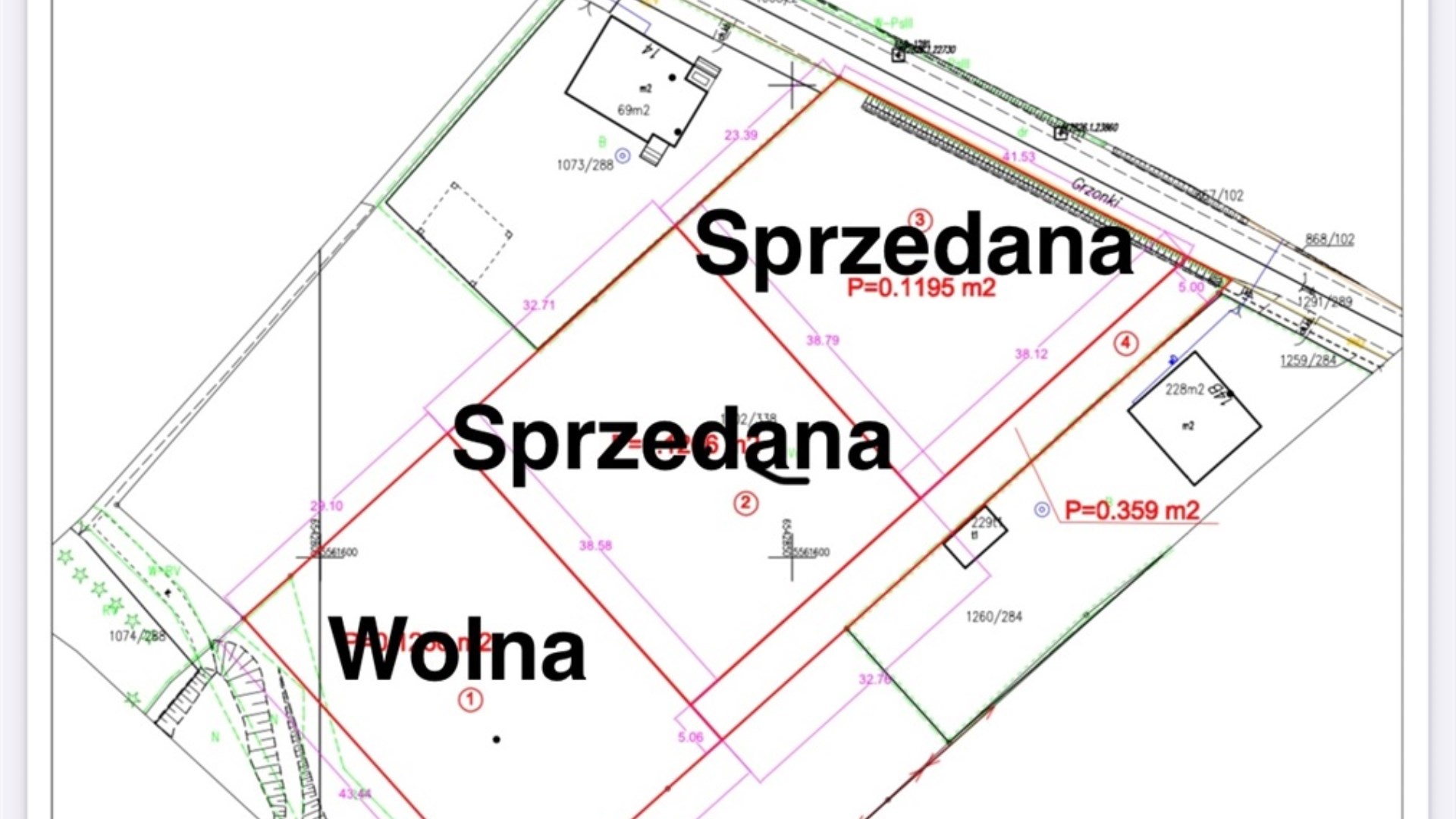 Ofertą sprzedaży jest działka nr 1 (ostatnia od drogi głównej ) w kształcie prostokąta o wymiarach ok. 29 m ( szerokość od frontu ) i długości ok. 43 m,  położona w Wilczej ul. Grzonki o powierzchni 1266 mkw.
