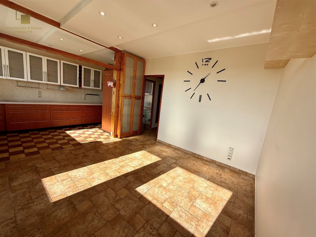 * Salon z otwartą kuchnią: Serce domu, jasne i przestronne. Okna w tej części wyposażone są w praktyczne rolety sterowane elektrycznie na pilota.