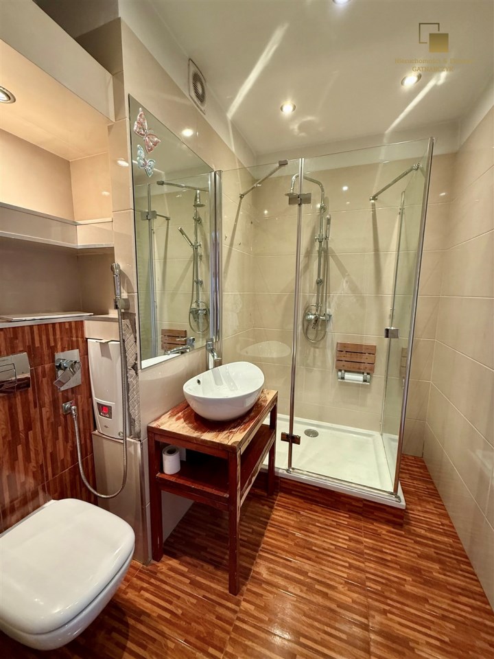 * Łazienka: Ustawna z prysznicem.