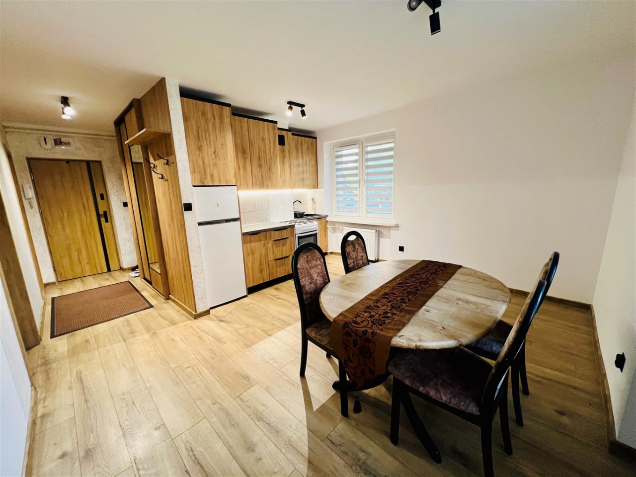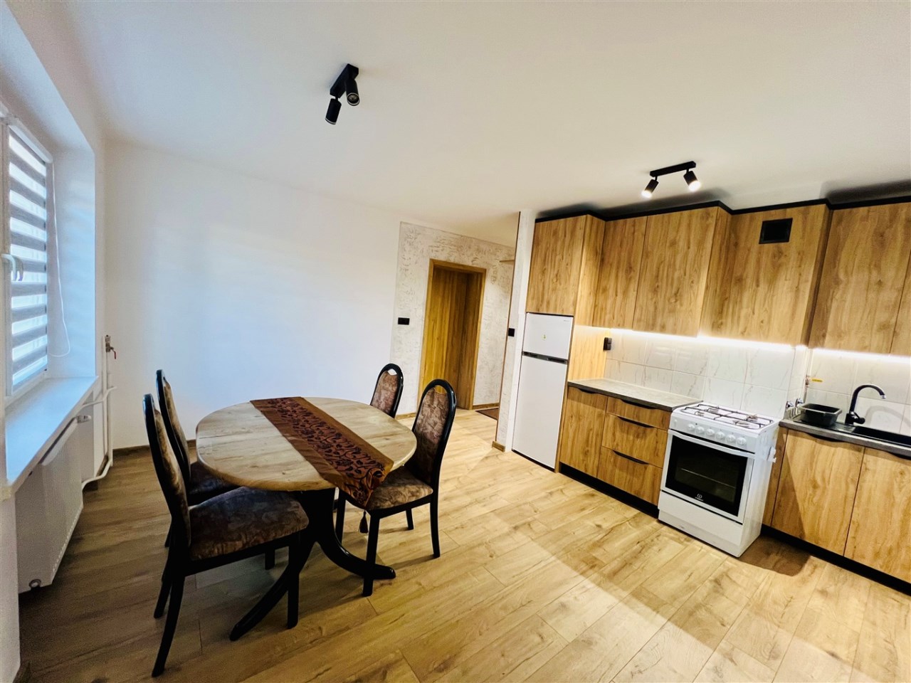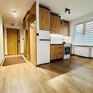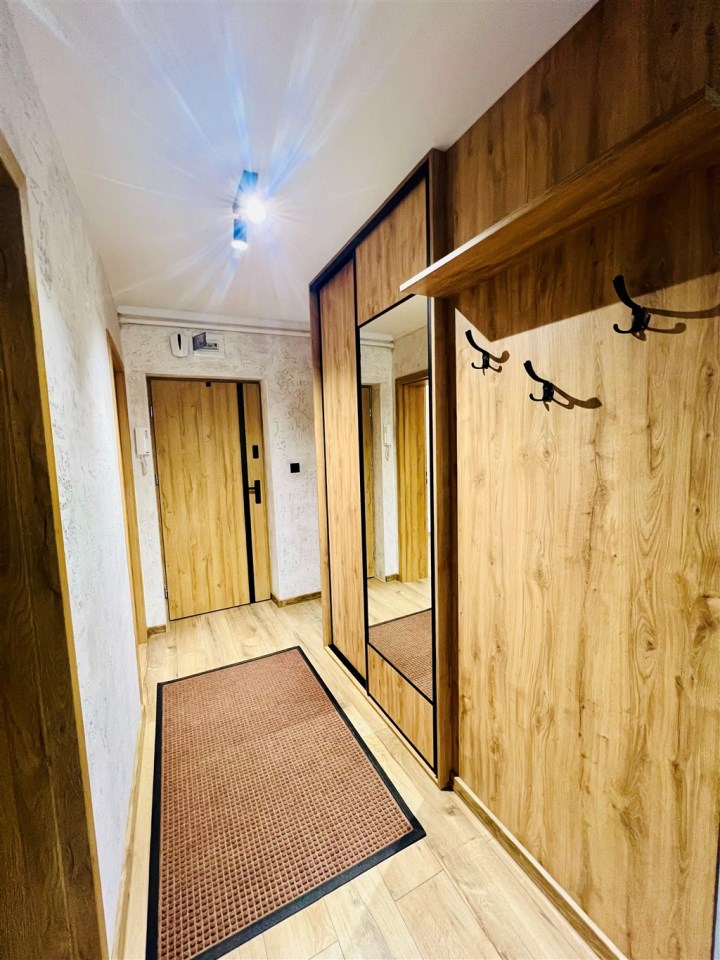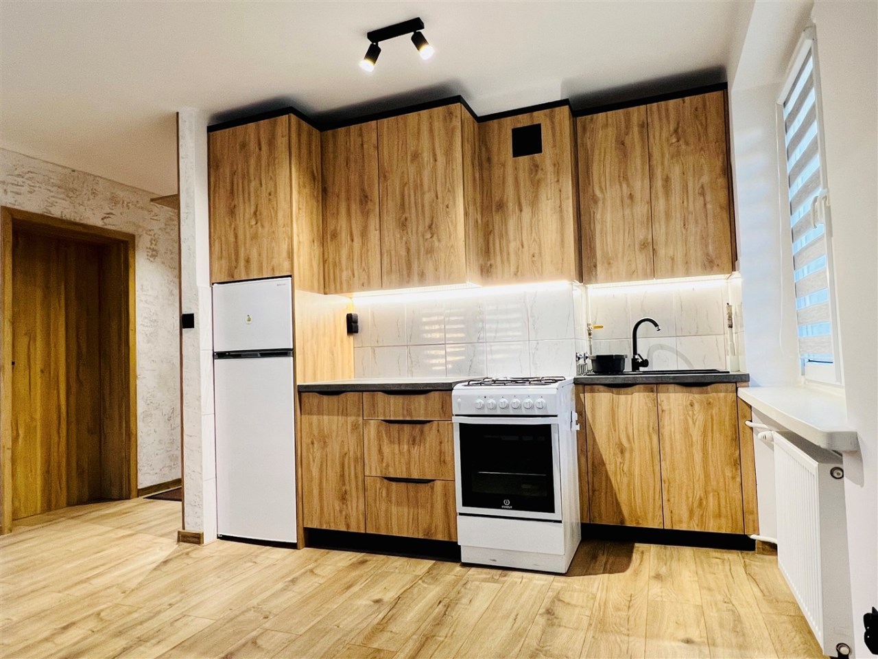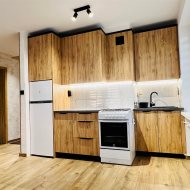 W skład nieruchomości wchodzą dwa przestronne pokoje z którego jednego jest wyjście na balkon. Duża kuchnia zabudowana w meble kuchenne oraz sprzęt AGD wraz z częścią jadalnią. Łazienka z prysznicem pralką, umywalką i wc. W przedpokoju znajduje się duża szafa z lustrem wykonana przez stolarza.
